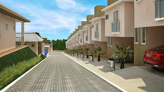 Estilo da Fachada - Sobrados individuais (junção apenas pelo banheiro e caixa de escada).